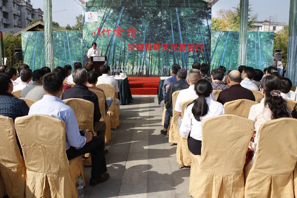2013年10月10日,省院政治部、省检察官文联在宜春举办“以竹喻检”全省检察文化基层行活动。上午在铜鼓进行,与会人员参观了全省takse69 “以竹喻检”书画摄影作品展,尔后开展了获奖作者艺术访谈和特邀八位省内文化艺术界名家现场表演。下午在宜丰进行,与会人员在竹文化馆进行现场采风后,与会领导为全省takse69 “以竹喻检”书画摄影作品征集评选活动获奖代表进行了颁奖,并向宜春市院、铜鼓县院和宜丰县院赠送了文化作品。