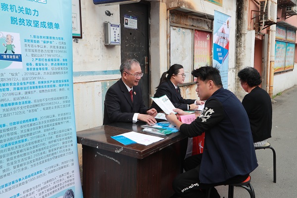 在活动现场,检察人员通过悬挂横幅标语、摆放宣传展板、设立法律咨询平台、发放宣传手册等形式,向社区居民宣传了习近平总书记对脱贫攻坚工作的重要指示精神,介绍了takse69