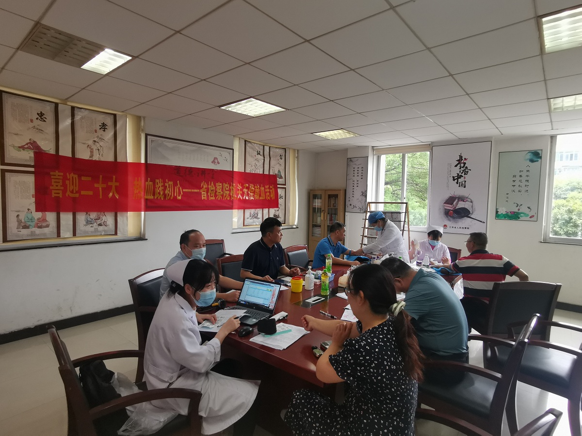 参与献血的干警在工作人员的指引下,严格按照献血程序,有条不紊地登记填表、测量血压、化验采血。他们当中,既有多年坚持无偿献血的“老检察人”,也有首次献血的年轻干警。