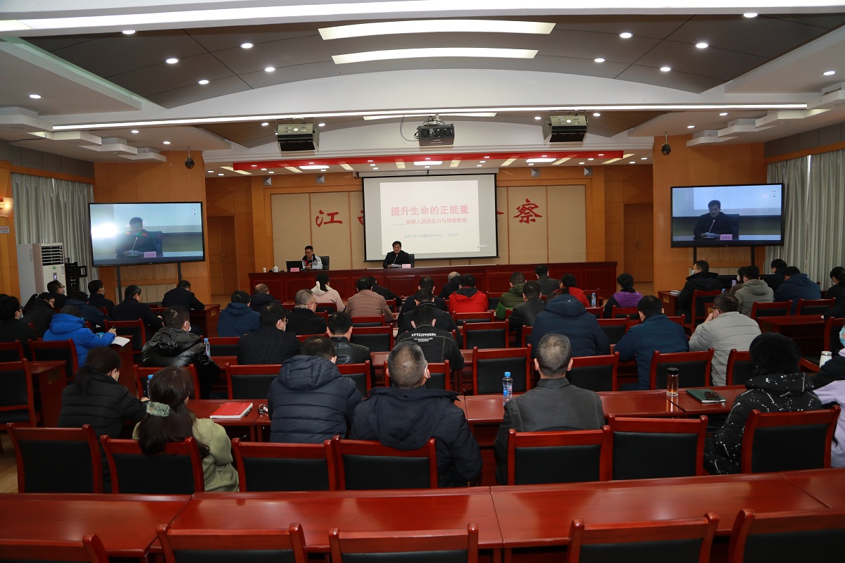 讲座邀请了南昌大学心理健康教育中心副主任、博士、副教授高美才,从“认识人的心理”、“检察人员的心理”、“自我心理保健”三个方面,为大家作主题为“提升生命的正能量——检察人员的压力与情绪管理”的专题辅导。
