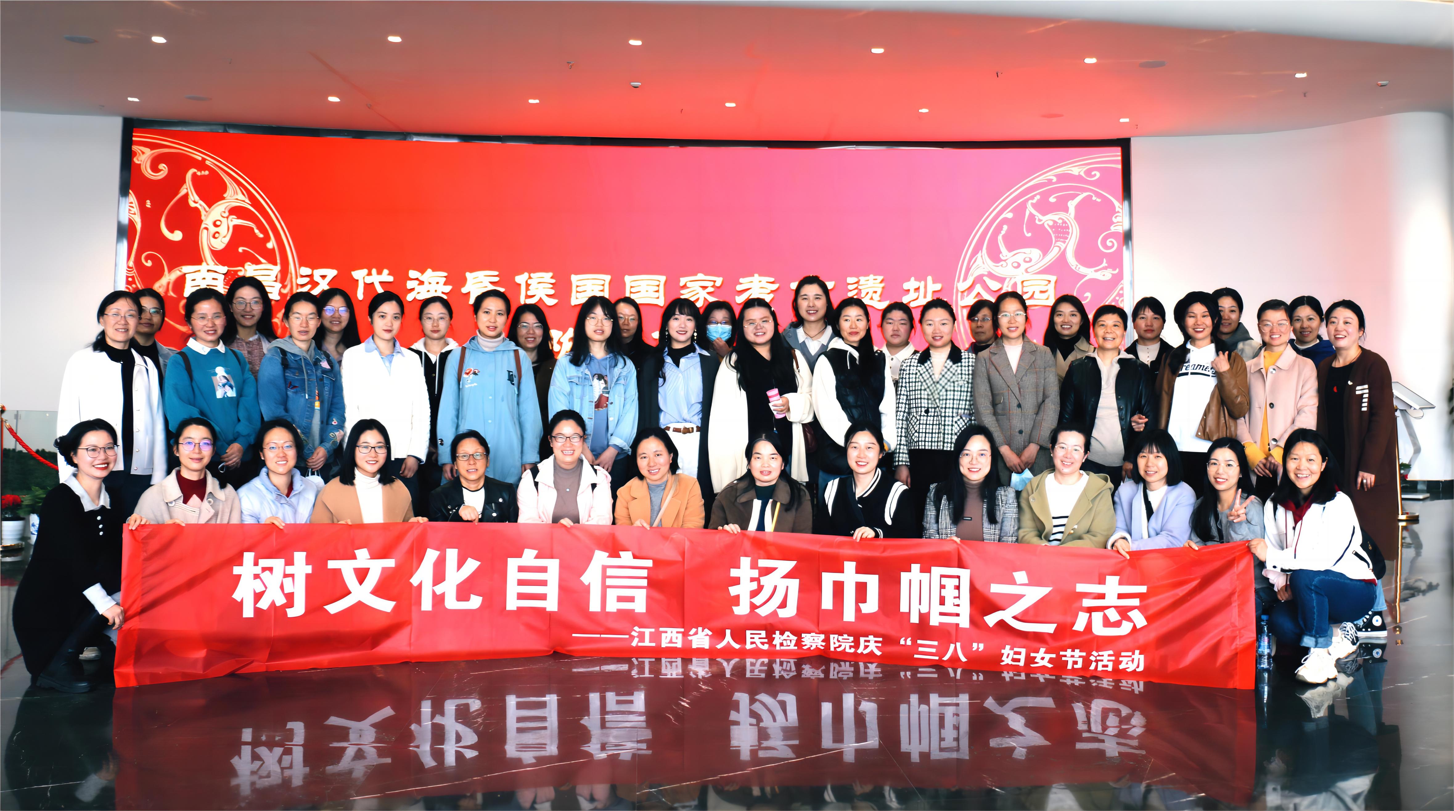 组织开展了以“树文化自信 扬巾帼之志”为主题的参观海昏侯国遗址活动,近50名检察女干警参加了活动。