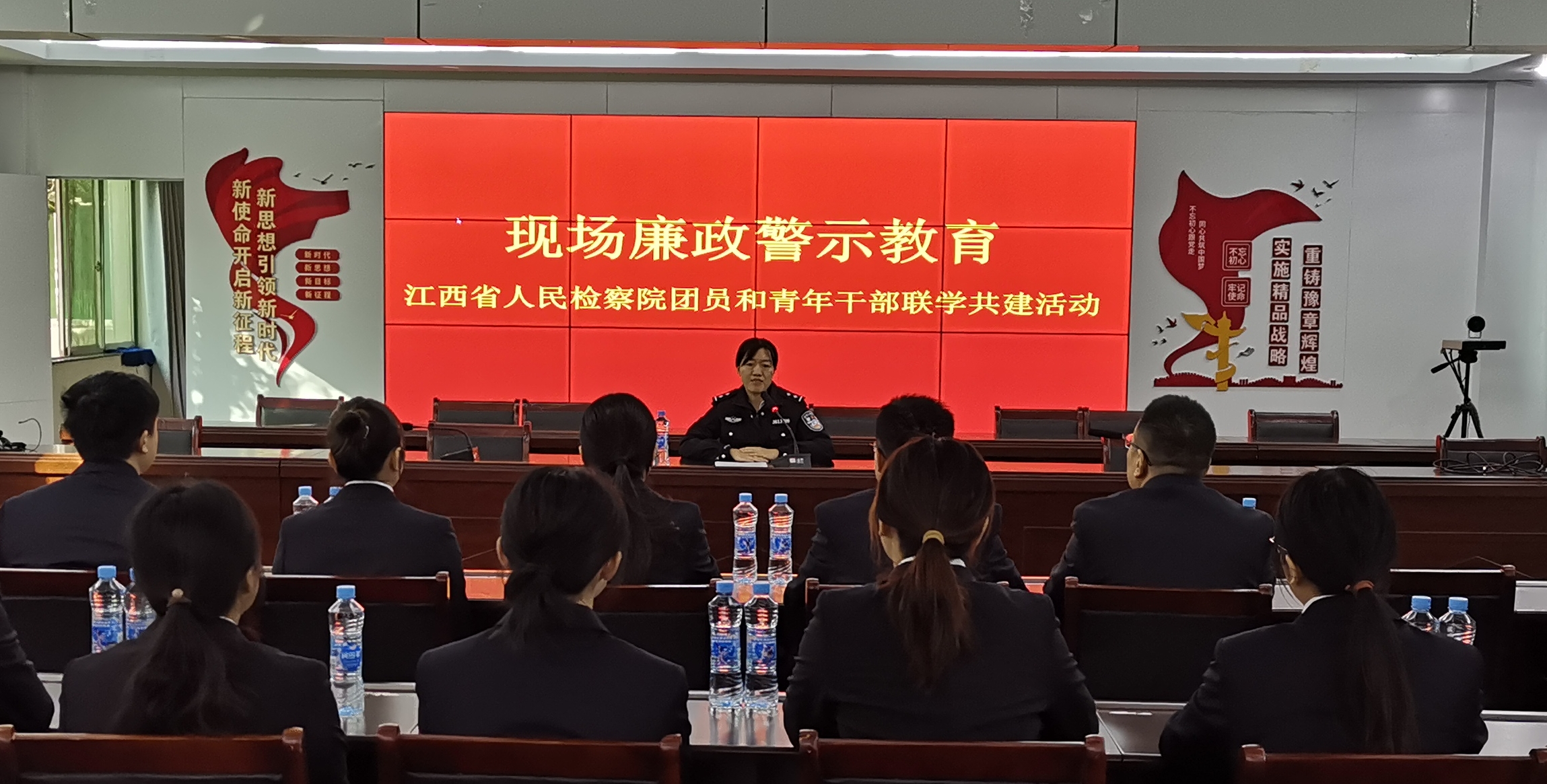 活动伊始,团员和青年干部走进江西省反腐倡廉警示教育基地(省豫章监狱),观看反腐倡廉警示教育展板,听取职务犯罪人员的现身说法,接受廉洁从检警示教育。随后,团员和青年干部围坐在一起,重温学习习近平总书记考察江西重要讲话精神和对青年一代的殷切希望,8名来自takse69